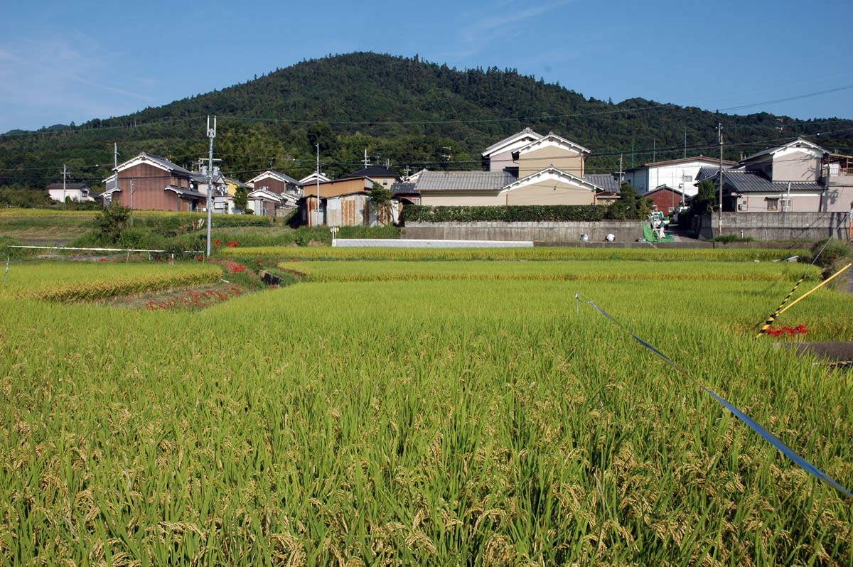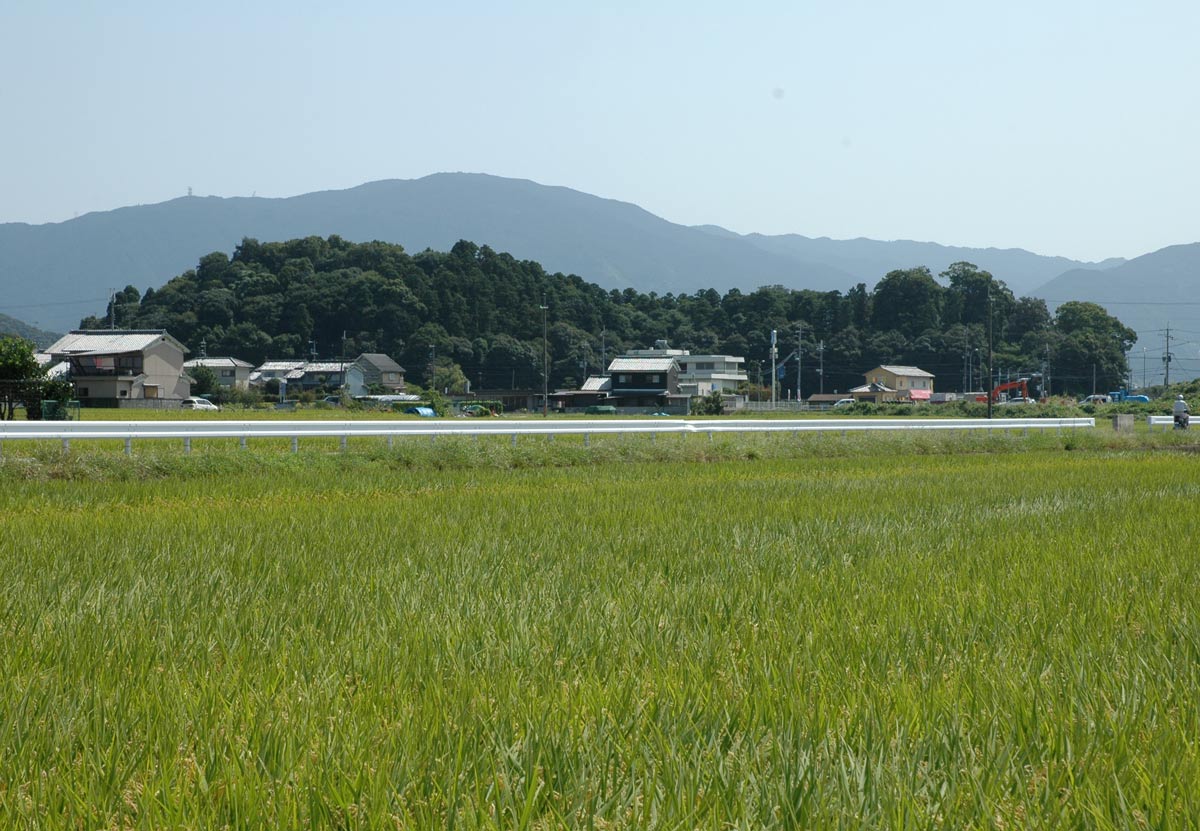 ・後ろに二上山がけっこう大きい。