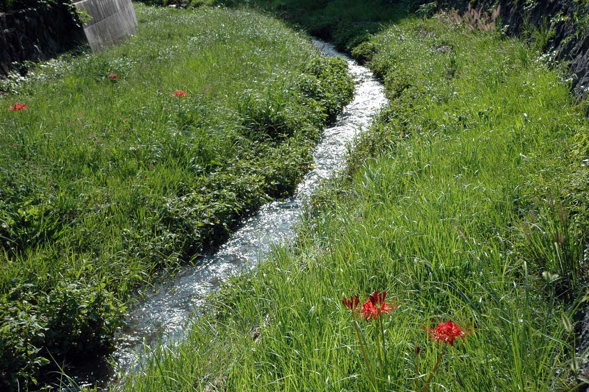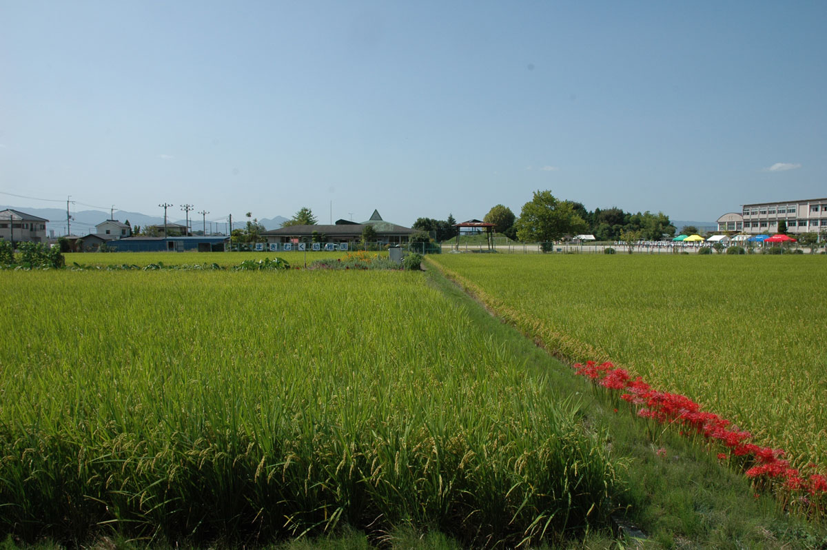 ・手前は水田。赤は彼岸花。