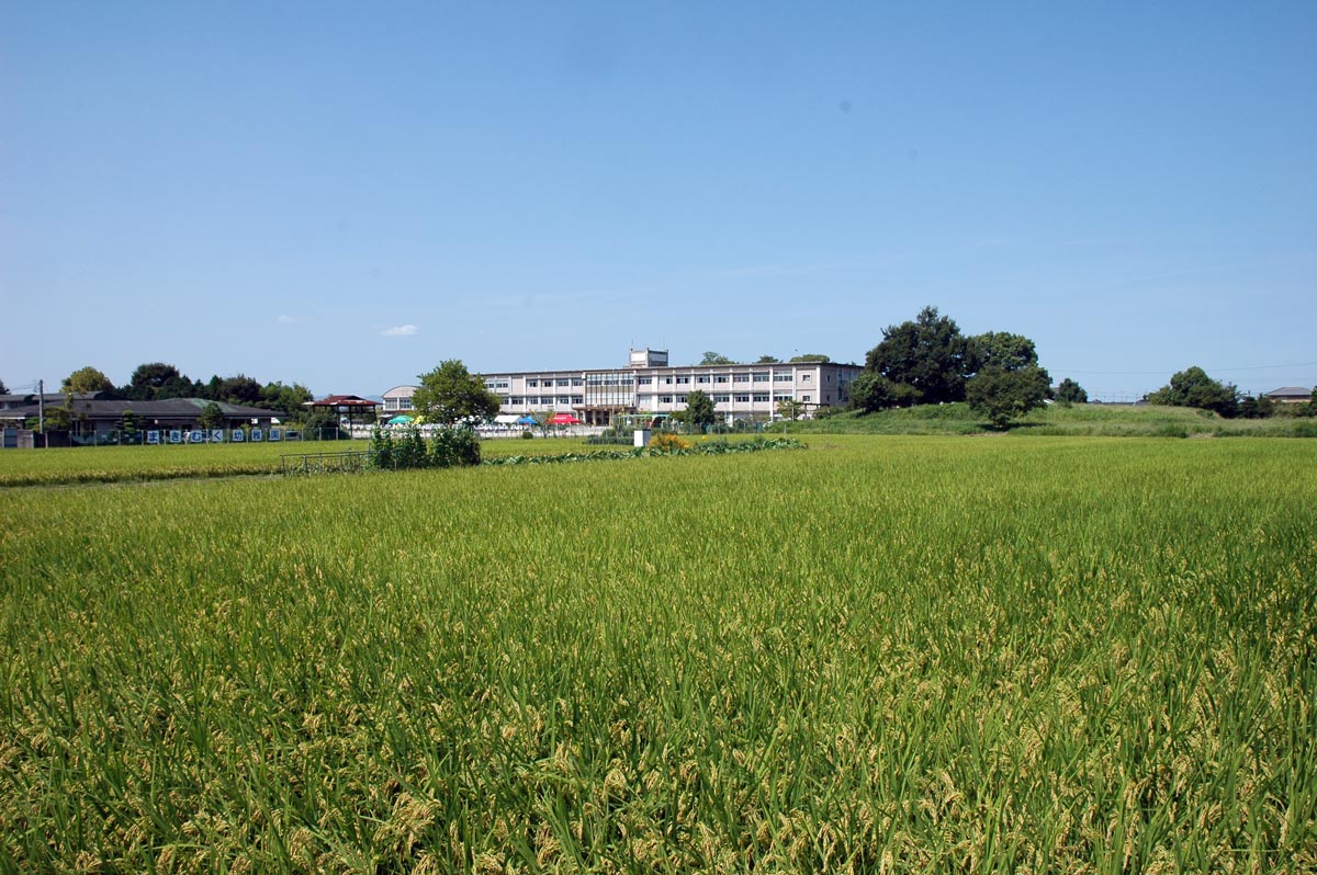 ・正面は幼稚園。右は小学校。