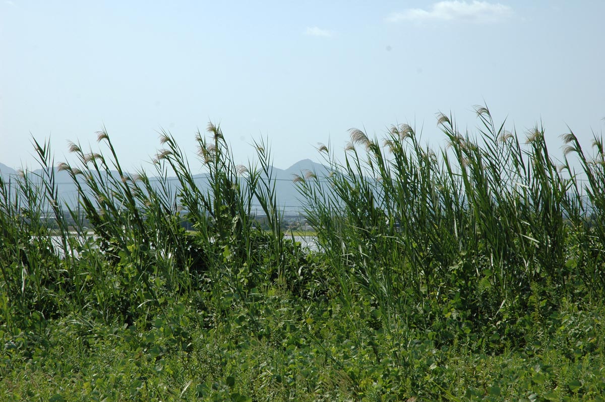 ▼ススキの向こうに二上山