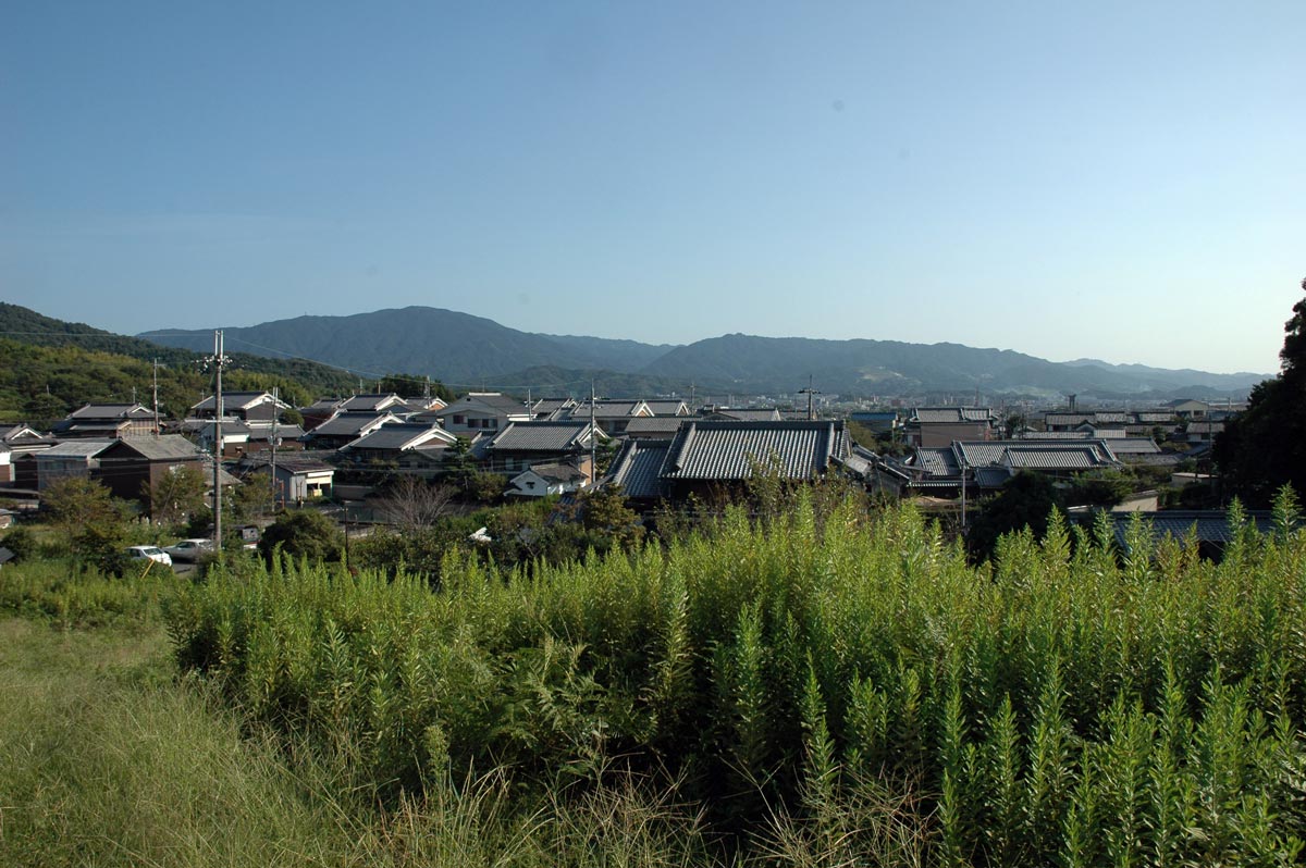 ・瓦屋根の向こうは桜井。