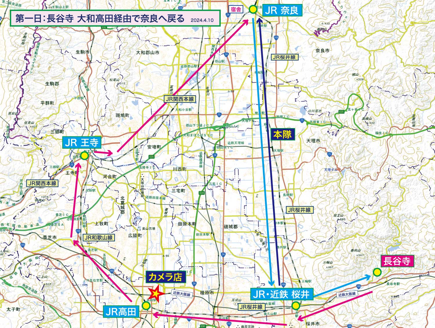 ▼第1日:長谷寺〜大和高田 map