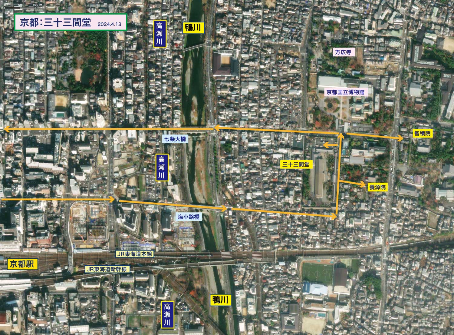 ・赤いのが三十三間堂。