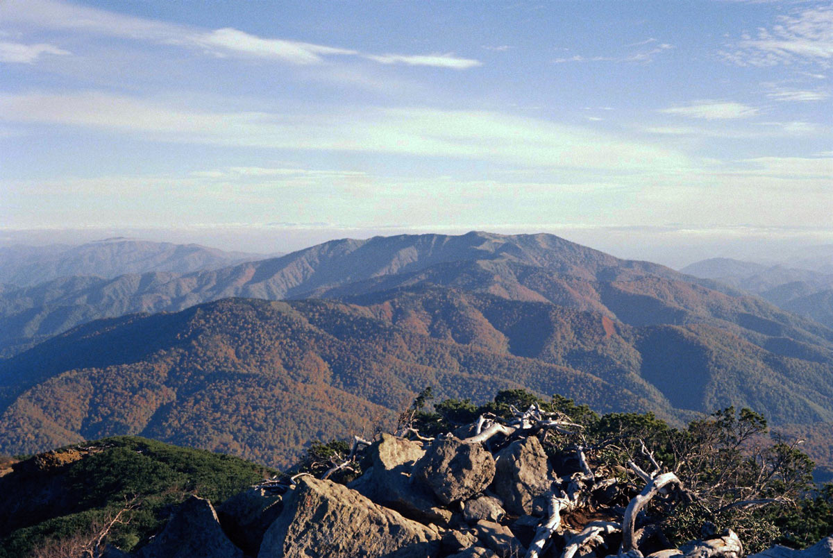 ・遠くに景鶴山2004mの突起。