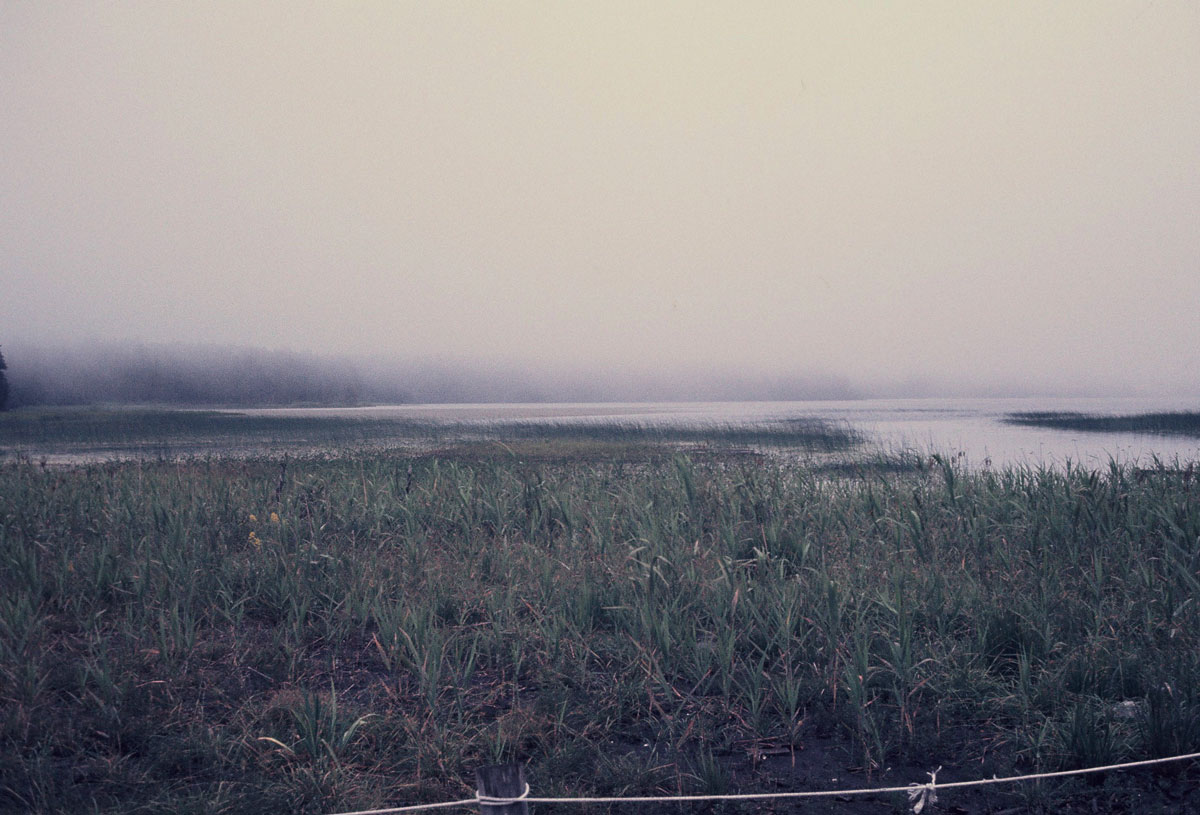 ・沼地の向こうに白樺の樹林。