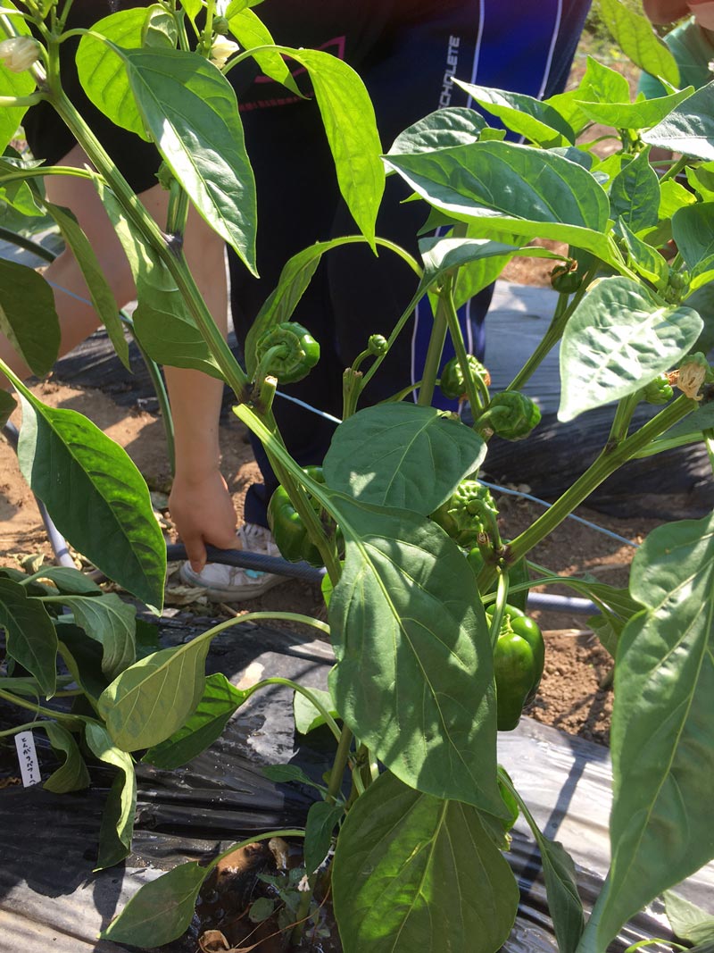 ・農場でピーマンの収穫。