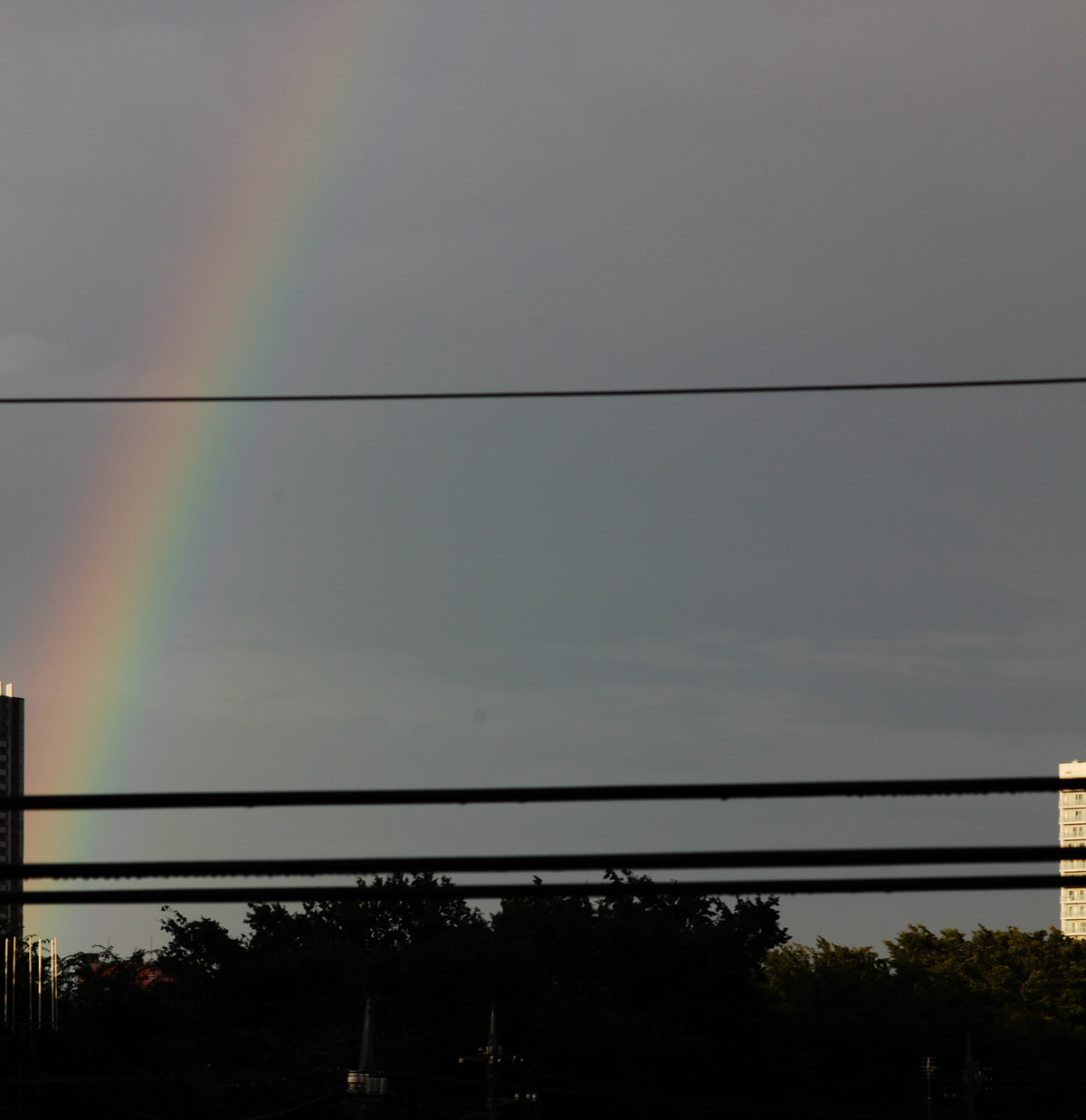 ・東の空に大きな虹がかかりました。
